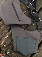 Handmade holsters crafted with synthetic leather and canvas lining.