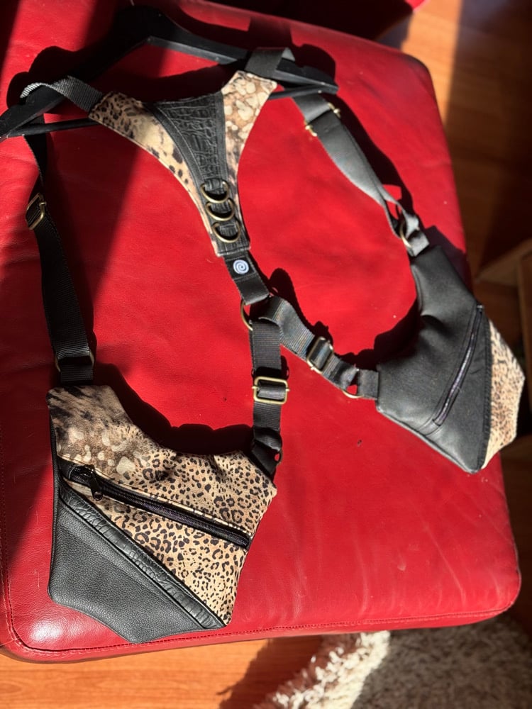 Handmade holsters crafted with synthetic leather and canvas lining.