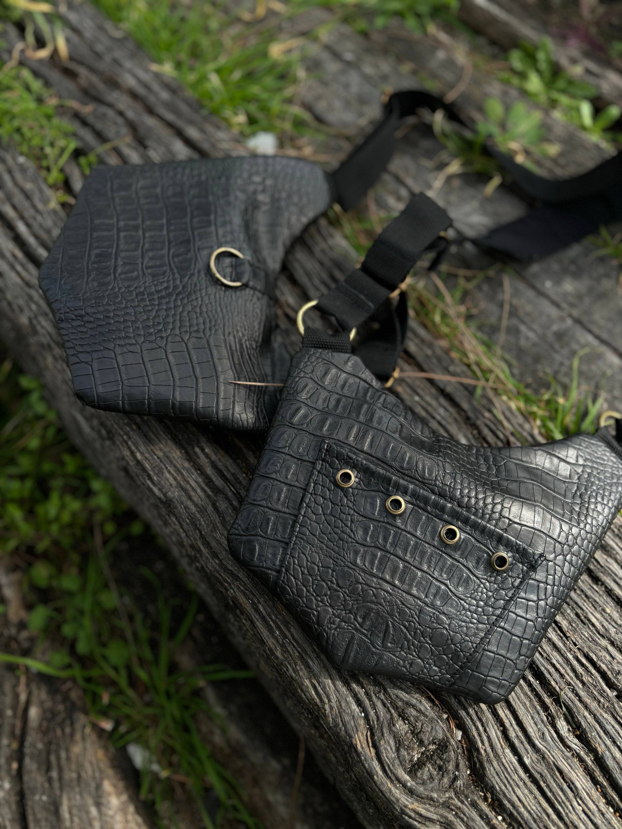 Pistoleras hechas a mano con piel sintética y canvas en el interior.