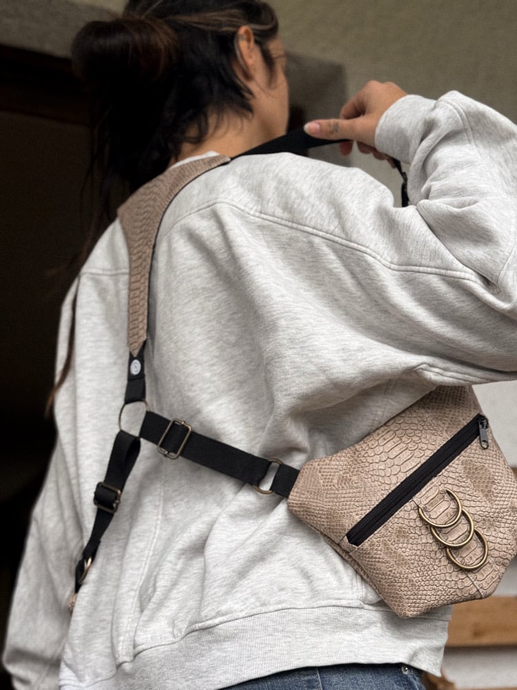 Pistoleras hechas a mano con piel sintética y canvas en el interior.